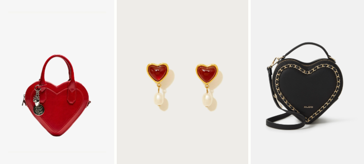 Il y a certains éléments qui permettent instantanément de donner une touche Saint-Valentin à votre tenue. Les motifs cœurs, discrets ou assumés, ajoutent une note romantique à votre look. Un sac en forme de cœur, une robe imprimée ou même des bijoux ornés de détails cœurs sont parfaits pour jouer avec les codes de cette occasion spéciale.
