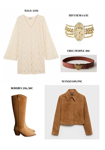 Une tenue de Saint-Valentin au style bohème, c'est possible, avec cette magnifique robe toute en dentelle blanche ! Associée avec une paire de bottes hautes et une veste en suédine marron, puis des bijoux dorés, on retrouve facilement le côté gipsy chic. Le petit détail qui fait toute la différence, c'est cette ceinture avec une boucle en forme de cœur !