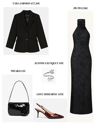 Un vêtement avec des détails fleuris, il n'y a rien de plus romantique pour une tenue de Saint-Valentin ! Pour associer cette robe avec un style chic et féminin, portez un blazer noir, des escarpins à talons et un petit sac noir. Optez pour le modèle de chez Misako qui rappelle les détails de la robe !