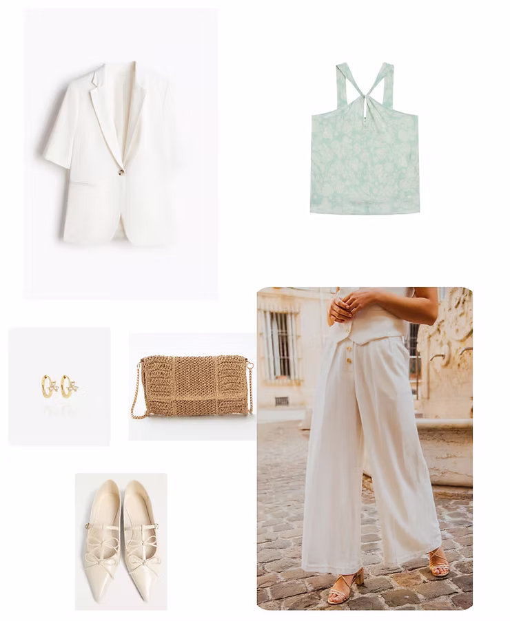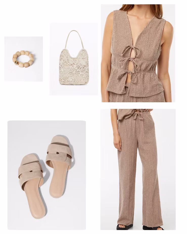 Pour une journée décontractée sans négliger le style, adoptez un ensemble composé d’un pantalon ample et d’un top léger. Ce look parfait pour les fortes chaleurs mise sur des matières respirantes et une palette de couleurs naturelles. Le style minimaliste de cet outfit permet de s'adapter à toutes les situations !
