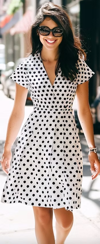 Les pois, ou polka dots, reviennent en force pour apporter une note de gaieté et de nostalgie à vos tenues. Qu'il s'agisse de petits pois discrets ou de grands cercles audacieux, ce motif se prête à de nombreuses interprétations. Mélangez-le avec des pièces modernes pour un look rétro-chic irrésistible.