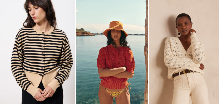 Craquez pour ce cardigan boutonné rayé élégant et intemporel, ce pull à manches courtes vitaminé et tendance ou ce cardigan ajouré à l'esprit bohème chic :