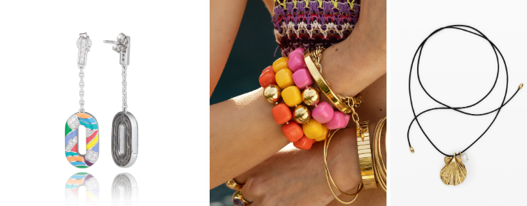 Les bijoux apportent la touche finale à vos looks, il est donc important de ne pas les oublier, même en vacances ! Ils ne prennent pas de place et permettent d'ajouter une touche mode à une tenue, même la plus simple. En 2025, la tendance est à l’accumulation de colliers dorés, de boucles d’oreilles coquillages, ou de bracelets colorés. Amusez-vous cet été avec vos bijoux !